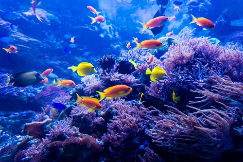 Framed Purple Blue Vibrant Anemone Coral Reef Fish Nature Animals Realism Rustic Scenic Landscape Wilderness Colorful Living Room Bedroom Office Natural