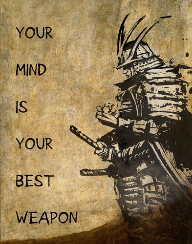 Adhesive Poster Your Mind is Your Best Weapon Samurai Killer Ink Dusk Dark Retro Black and Tan Yellow Vintage Living Room Bedroom Office
