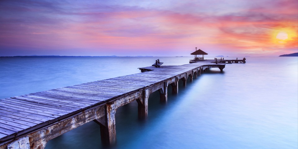 Wooded Bridge in The Port Between Sunrise Stretched and Framed