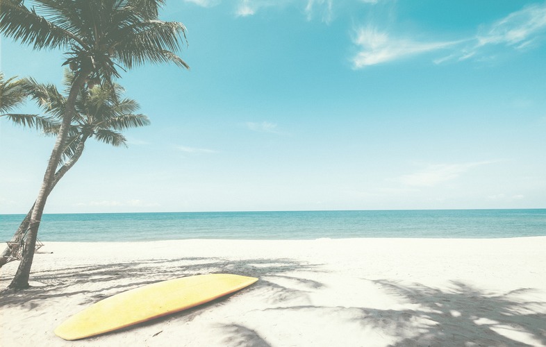 SIGNLEADER Framed Sunny Tropical Beach Surfboard and Palm Trees Nature Photography Landscape Illustration Decorative Living Room Bedroom Office Natural