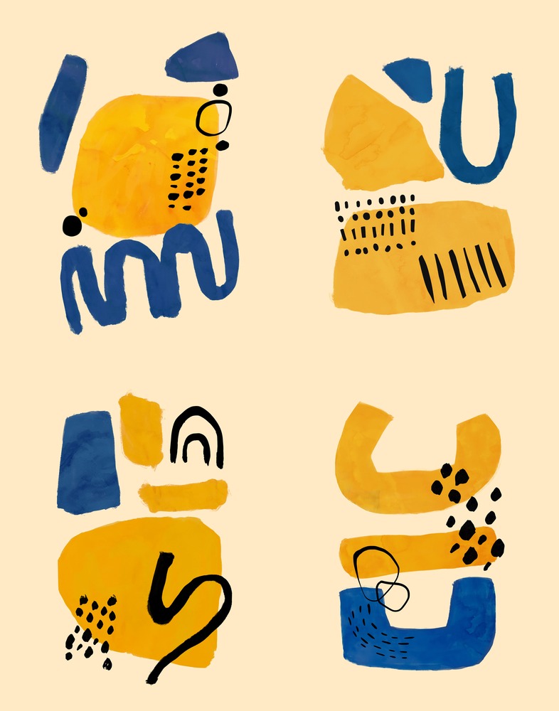 SIGNLEADER Framed Collage Set Abstract Blue and Yellow Illustrations Relax Colorful ation Living Room Bedroom Office Natural Frame