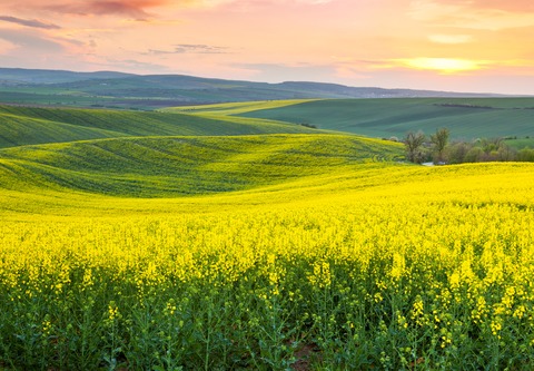 Spring Fresh Landscape of Colorful Fields Sunrise Sky and Beautiful Hills Valley Removable Mural SelfAdhesive Large paper