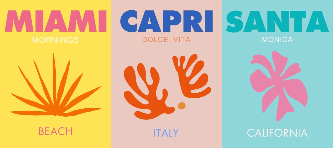 Poster Miami Capri Santa Exhibition Posters Nature Shapes Illustrations Decorative Abstract Geometric Travel Living Room Bedroom Office