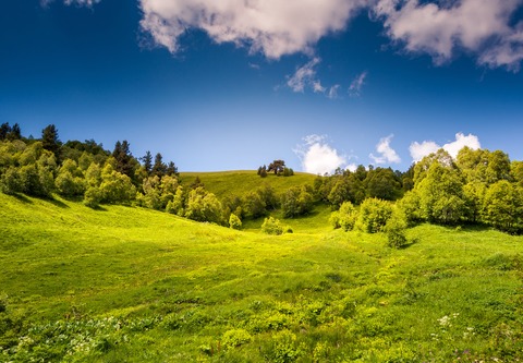 Beautiful View of Rural Alpine Landscape Sunny Hills Under Cloudy Sky Removable Mural SelfAdhesive Large paper