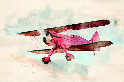 ColorBanner Framed Vintage Watercolor Hot Pink Biplane Transportation Airplanes Digital Chic Colorful Living Room Bedroom Office Black