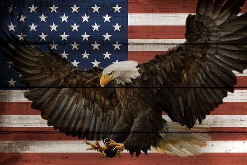 Wood Panel Effect Flying Bald Eagle American Flag Stars Cultural Historic Digital Decorative Global Patriotic Living Room Bedroom Office