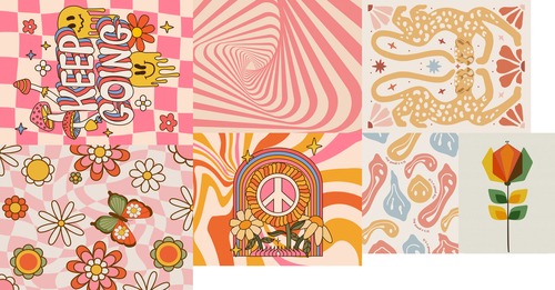 Framed Collage Set of Pink Stripes Collage Pop Culture Illustrations Decorative Boho Chic Living Room Bedroom Office Black