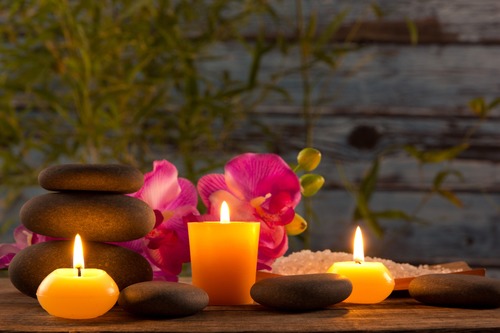 Zen Atmosphere Massage Stone Tropical Flower Candle Yoga Nature Photography Realism Rustic Scenic Landscape Colorful Living Room Bedroom Office