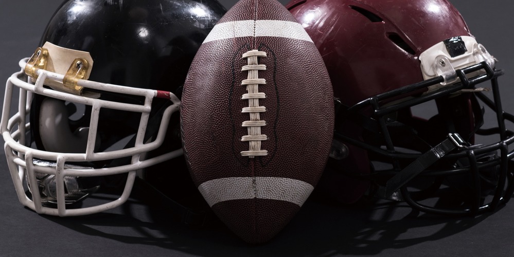 Set Football Between Two Helmets Sports People Photography Realism Contemporary Portrait Urban Multicolor Dark Living Room Bedroom Office