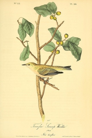Beautiful Illustration of a Tennefsee Swamp Warbler by John James Audubon