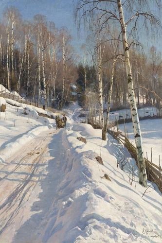 artprintsstop Floating Frame Sleigh Ride on a Sunny Winter Day by Danish Painter Peder Mørk Mønsted