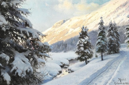 artprintsstop Winter Landscape at Morteratsch in Switzerland by Danish Painter Peder Mørk Mønsted