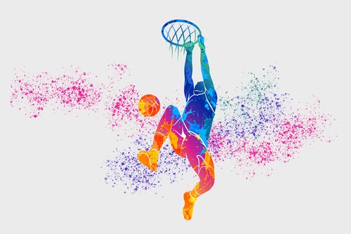 Rainbow Spray Paint Ink Basketball Player Sports Fitness Athletes Digital Realism Boy's Bedroom Decorative Urban Rustic Living Room Bedroom Office