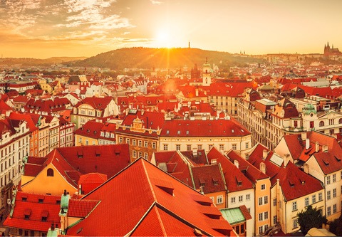 Top View to Red Roofs Skyline of Prague City Czech Republic Removable Mural SelfAdhesive Large paper