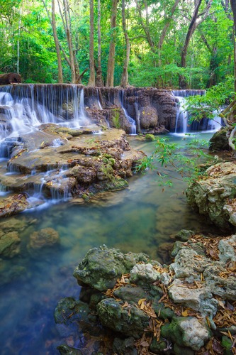 Framed est River Waterfall in Thailand Floral Plants Photography Realism Rustic Scenic Colorful Multicolor Neon Living Room Bedroom Office BLACK