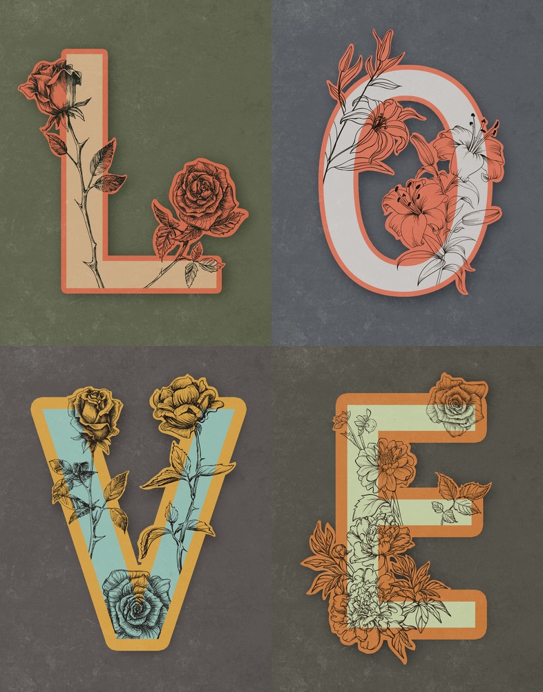 Framed Poster Floral LOVE Typography Minimalist Multicolor Decorative Living Room Bedroom Office BLACK