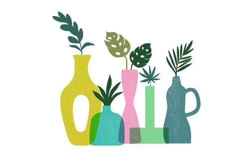 MUDECOR Framed Green Leaves in Geometric Vases Floral Plants Drawings Decorative Elements Group Colorful Ultra Living Room Bedroom Office Natural