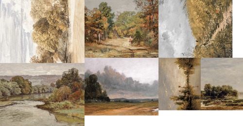 Poster Collage Set of Serene Woodland and Countryside Landscapes Nature Wilderness Illustrations Decorative Living Room Bedroom Office