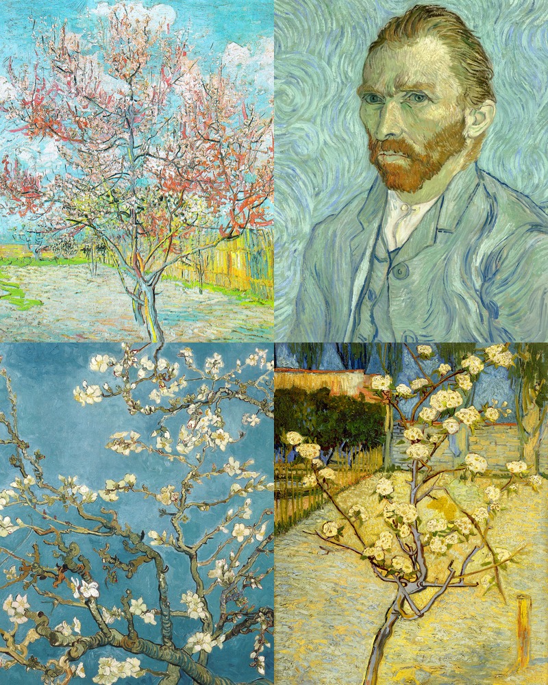 Ashbrook Framed Set Almond Blossom and Peach Tree Collection Master ist Van Gogh Oil Painting Impressionism Colorful Living Room Bedroom Office White
