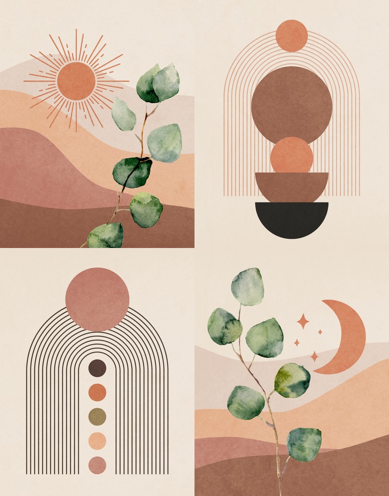 SIGNLEADER Collage Set Tropical Desert Jungle Plant Polygons Abstract Nature Illustrations Rustic Colorful Living Room Bedroom Office Unframed