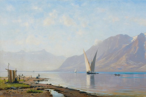 SIGNLEADER Framed Mountain Sailboat Ocean Sea Ship Nature Wilderness Illustrations Fine Decorative Landscape Colorful Living Room Bedroom Office