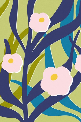 SIGNLEADER Framed Pink Daisies on Blue Leaves Nature Plants Illustrations Contemporary RelaxCalm Multicolor Ultra Living Room Bedroom Office Natural