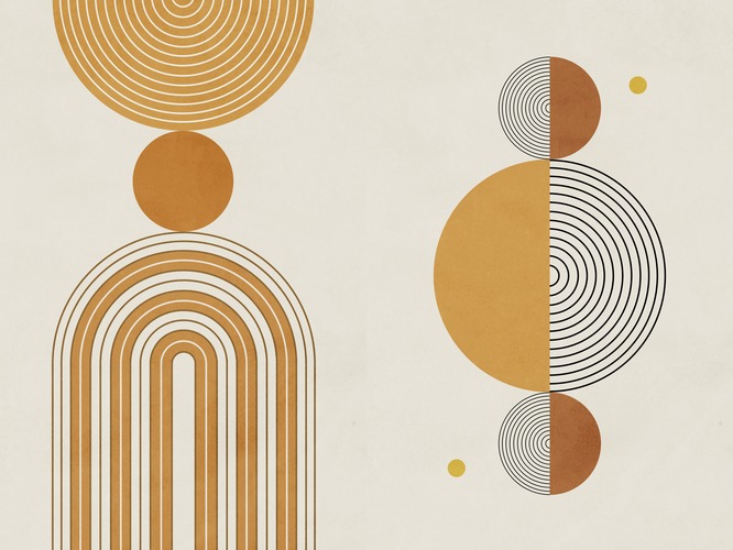 Ashbrook Framed Bronze Gold Black Geometric Spiral Circle Variety Abstract Shapes Illustrations Nordic Colorful Living Room Bedroom Office White
