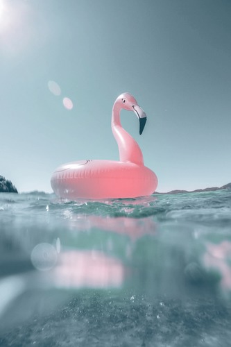 SIGNLEADER Framed Flamingo Floaty at Sea Places Ocean Photography Nautical Scenic Dramatic Multicolor Ultra Living Room Bedroom Office BLACK