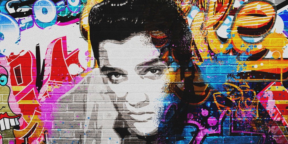 Framed Set Urban High Contrast Elvis Portrait Graffiti Street People Illustrations Pop Bohemian Colorful Living Room Bedroom Office Natural