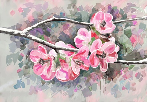Original Painting of Flower Blooming Spring Tree Watercolor Vector Version Removable Mural SelfAdhesive Large paper