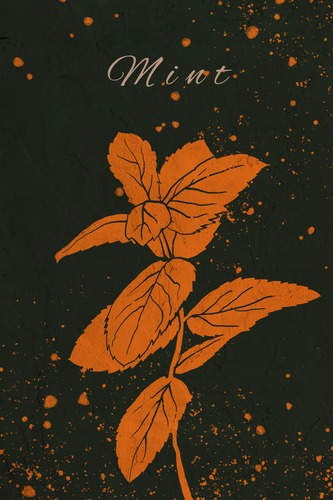 Framed Orange Black Mint Silhouette with Paint Specks Floral Plants Illustrations Minimalism Rustic Colorful Dark Living Room Bedroom Office Natural