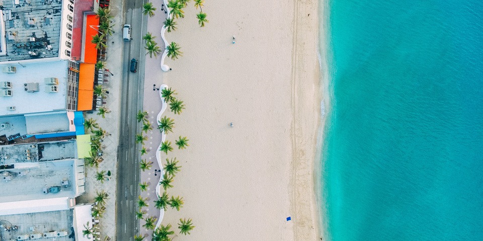 an Aerial View of The Tropical Beach with White Sand Stretched and Framed