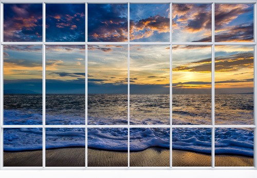 Removable Sticker Mural Vibrant Dark Sunset Tropical Beach Nature Wilderness Photography Realism Landscape Rustic Window Door Living Room Bedroom Office
