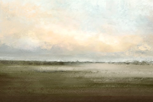 Watercolor Dusk Sky Over Green Field Nature Wilderness Illustrations Rustic RelaxCalm Cool Living Room Bedroom Office