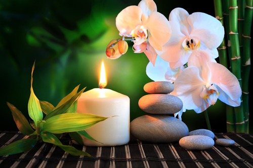 Relaxing Zen Candle White Orchid Massage Stone Bamboo est Nature Yoga Photography Contemporary Decorative Chic Living Room Bedroom Office
