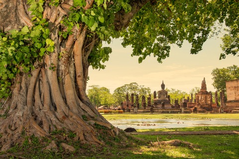 Braided Roots of Large Banyan Tree in Sukhothai Historical Park Thailand Decor s W x L