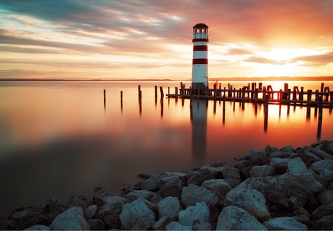 Landscape Ocean Sunset Lighthouse Removable Mural SelfAdhesive Large paper