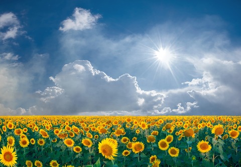 Summer Beautyful Landscape with Big Sunflowers Field and Blue Sky with Clouds Removable Mural SelfAdhesive Large paper