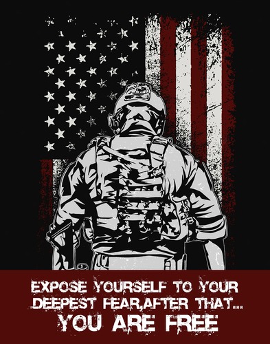 Adhesive Poster Expose Yourself to Your Deepest Fear After That You are Free American Flag Soldier Poster Military Life Quote Living Room Bedroom Office