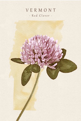 Framed Vermont Red Clover State Flower Floral Plants Illustrations Rustic Colorful Multicolor Living Room Bedroom Office Natural