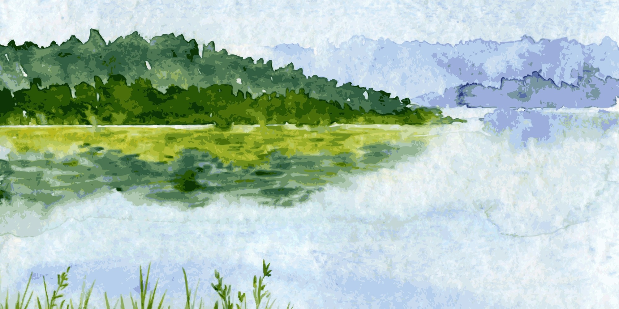 Panel Watercolor Mountain Trees Calm Lake