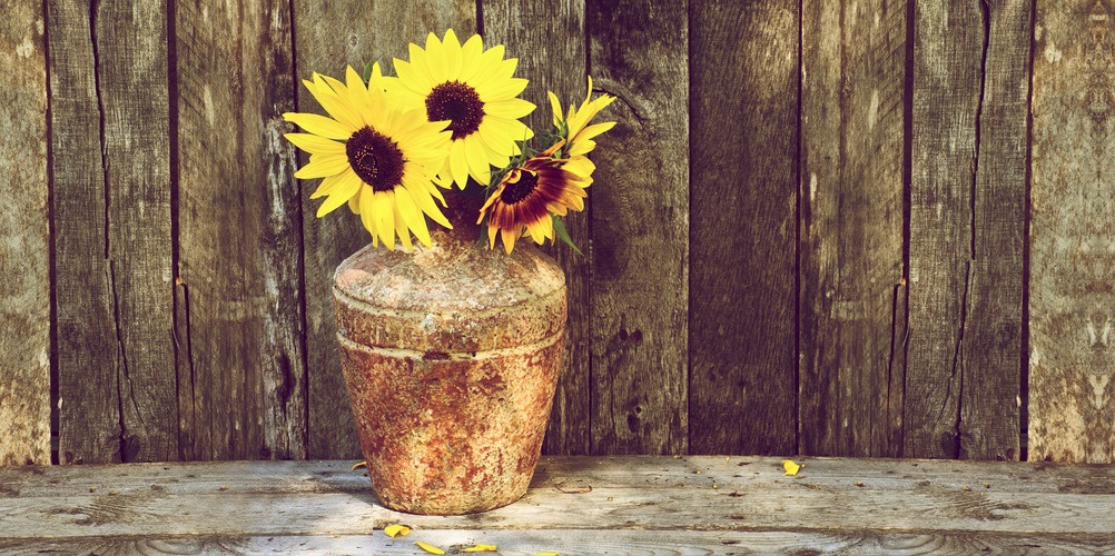 Rustic Vase with Sunflowers Framed Natural