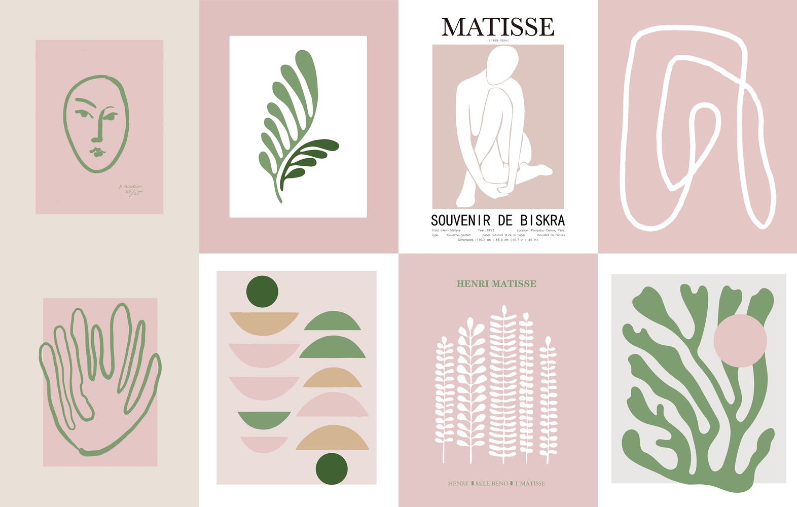 Adhesive Poster Bathroom Decor Room Decor Multicolor Living Room Bedroom Office Matisse Nude Dancer Geometric Pink Jungle Plant Nature Abstract Shapes