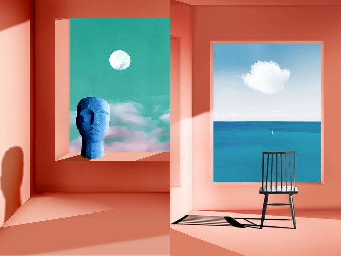 Framed Set Aesthetic with Minimalist Sculpture and Ocean Views Illustrations Decorative Living Room Bedroom Office BLACK