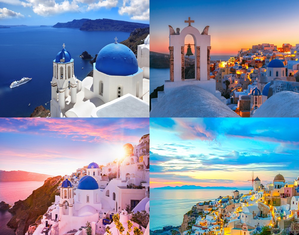 Adhesive Poster Amazing Santorini with Churches and Sea View in Greece Close Up Minimalism Digital Decorative Zen RelaxCalm Multicolor Bedroom