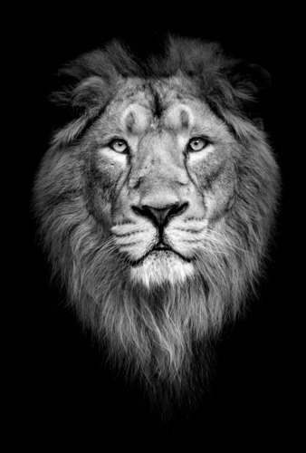 Headshot of an African Lion Animals Wildlife Photography Traditional Portrait Dramatic Black and White Living Room Bedroom Office