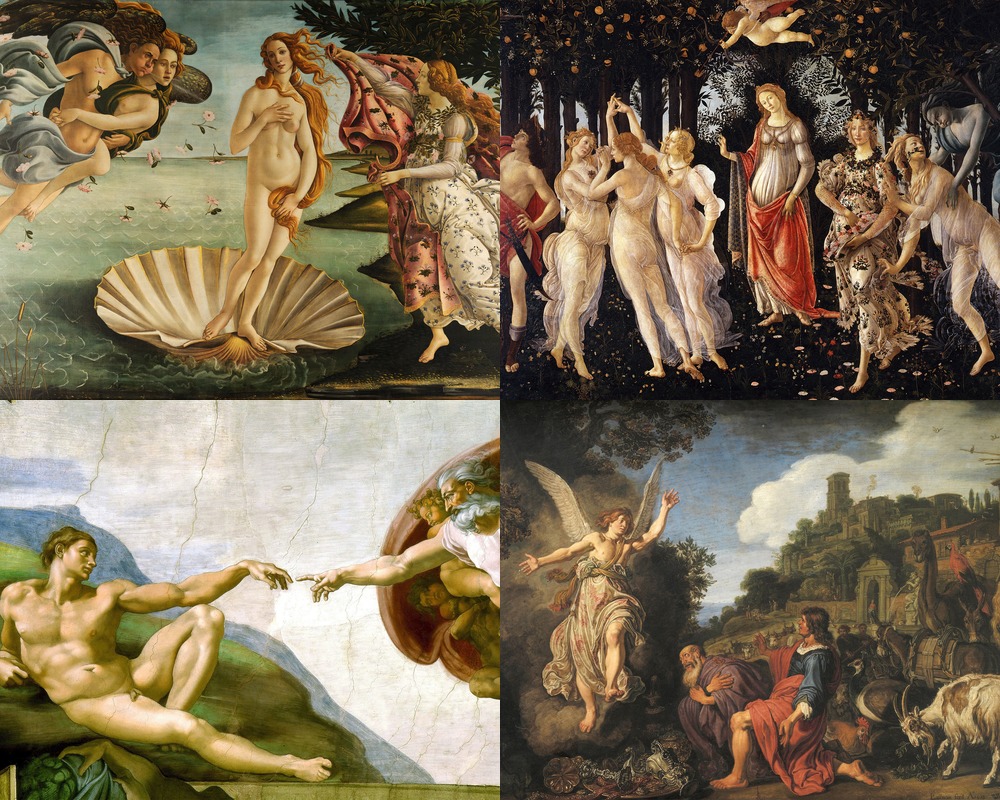 Woodrose Framed Set Creation of Adam and Raphael Collection Master ist Sandro Botticelli Painting Renaissance Retro Living Room Bedroom Office Black