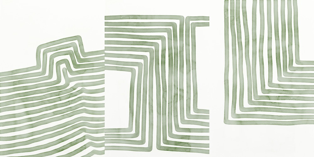 Set Sage Green Stripe Polygon Pattern Collage Abstract Geometric Illustrations Decorative Bohemian Multicolor MidCentury Bedroom