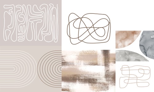 Framed Collage Set of Pastel Grunge Watercolor Lines Circles Illustrations Decorative Living Room Bedroom Office Natural