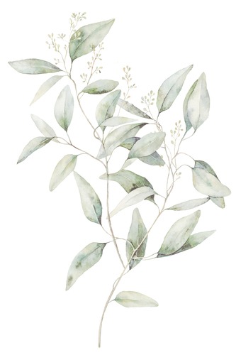Framed Pastel Green Leaves with Small Flowers Floral Botanical Illustrations Rustic RelaxCalm Multicolor Living Room Bedroom Office Black